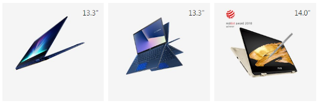 ZenBook 13 is powered by an Intel® Core™ i5-8265U 1.6GHz with Turbo Boost, 8GB 2133MHz LPDDR3 onboard RAM and 256GB PCIE SSD + TPM. Whereas the ZenBook 14 is powered with Up to Intel® Core™ i7-8565U 1.8GHz with Turbo Boost, up to 16GB 2133MHz LPDDR3 onboard RAM and up to 512GB PCIE SSD and finally the ZenBook 15 powered by Up to Intel® Core™ i7-8565U 1.8GHz with Turbo Boost, Up to 16GB DDR4 onboard RAM and Up to 512GB PCIE SSD.